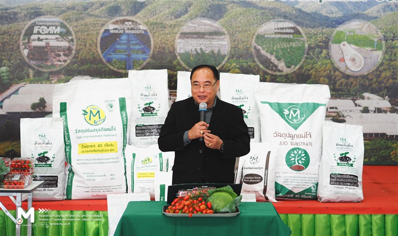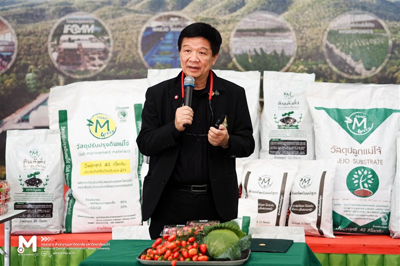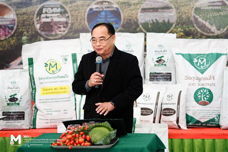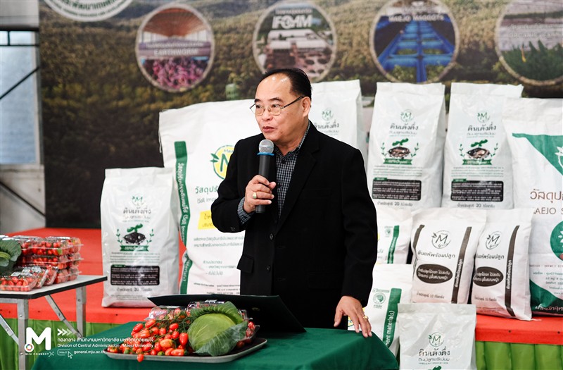 วันพุธที่ 4 มีนาคม 2569 รองศาสตราจารย์ ดร.วีระพล ทองมา อธิการบดีมหาวิทยาลัยแม่โจ้ เป็นประธานเปิดงานแถลงข่าวโชว์นวัตกรรม "ดินพรีเมี่ยม" จากวัสดุอินทรีย์เหลือใช้วันละหลายตันสู่ปัจจัยการผลิตทางการเกษตรชั้นยอด อุดมด้วยธาตุอาหารสำคัญสำหรับพืช ช่วยการเจริญเติบโตและคุณภาพผลผลิต พร้อมปลูกในขั้นตอนเดียวโดยไม่ต้องใส่ปุ๋ย ณ ศูนย์วิจัยและพัฒนาเกษตรธรรมชาติ มหาวิทยาลัยแม่โจ้